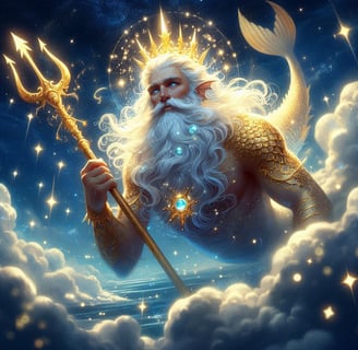 King Triton, a prominent figure in Greek mythology, is known as the ruler of the sea and a god of water. Often depicted as a merman, he possesses the upper body of a human and the tail of a fish. As the son of Poseidon, the god of the ocean, Triton is recognized for his powerful trident, which he uses to calm or provoke the waves. In various myths, he is portrayed as a majestic and benevolent figure, guiding sailors and protecting them from storms. Triton is also associated with the natural world, often seen alongside sea creatures. His image resonates in popular culture, most notably as a character in Disney’s "The Little Mermaid”. King Triton will replace Capricorn.
