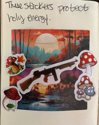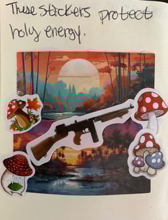 If something is valuable to you, you want to defend it. One way to do that is by setting that intention then making sticker collages. By loosing holy energy over the item or concept you with to defend, evil is bound up, and that is the first step to deliverance.